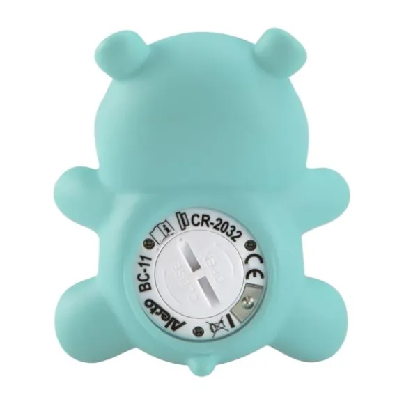De Alecto BC-11 Badthermometer is uitgevoerd in een grappig nijlpaard design. Met deze badthermometer kun je op 1 graad nauwkeurig de temperatuur van het badwater of de kamer meten. Wanneer het water te warm is (>39°C) geeft de badthermometer een melding. De thermometer kan blijven drijven en is waterdicht. Er wordt een vervangbare batterij meegeleverd waarmee de badthermometer 365 uur gebruikt kan worden.