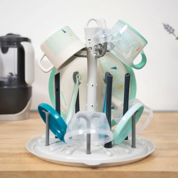 De Babymoov Flessendroger Compact is perfect om de drinkflesjes en voedingsaccessoires van je kindje te laten uitlekken. Op de flessendroger is ruimte voor maar liefs 6 gewassen flessen en is geschikt voor alle soorten babyflessen. In de uitneembare waterbak wordt al het vocht opgevangen wat het makkelijk maakt om het aanrecht schoon te houden. Je kan de droger eenvoudig aanpassen naar je eigen wensen doordat je alle haakjes en pinnen kun verwijderen of verplaatsen. Verder is de flessendroger geschikt om te wassen in de vaatwasser.