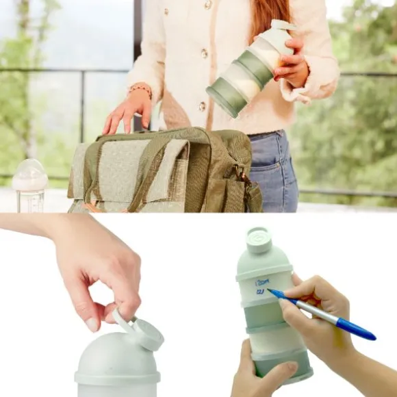 Deze melkpoederdoos heeft een XL-capaciteit van 12 lepels melkpoeder per compartiment, ideaal voor flessen tot 360 ml. De transparante compartimenten maken het eenvoudig om de inhoud te identificeren en nauwkeurig te doseren. Dit is vooral handig voor nachtelijke voedingen, zodat je zonder stress een flesje kunt klaarmaken. Het stapelbare en verwisselbare ontwerp maakt de doos bovendien multifunctioneel; gebruik hem later als snackdoos of voor kleine voorwerpen.