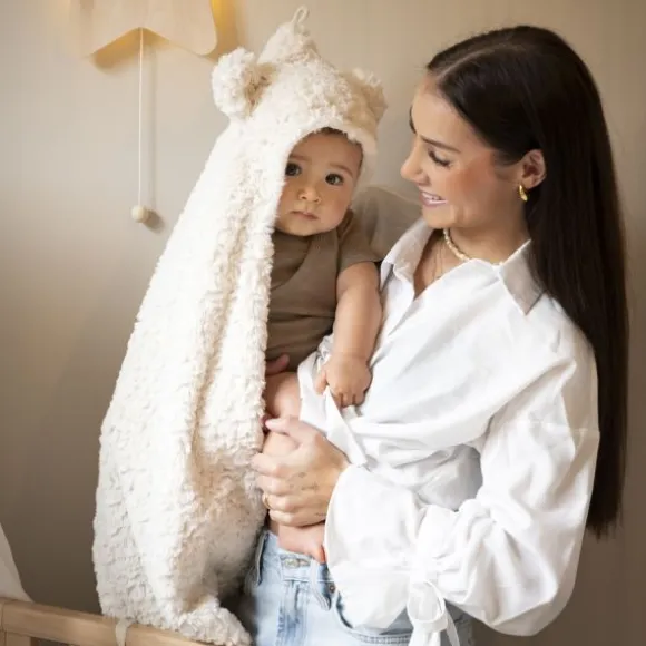 Wat deze wikkeldeken extra bijzonder maakt, zijn de schattige beeroortjes op de capuchon. Dit speelse detail geeft de deken een unieke en lieve uitstraling. De binnenkant is gemaakt van zacht katoen, terwijl de buitenkant voorzien is van een fluffy textuur voor extra warmte en comfort. Dankzij het handige formaat is de deken eenvoudig in gebruik en ideaal om je baby lekker in te wikkelen.