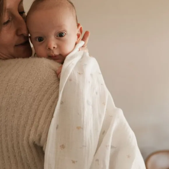 De Bamboom Swaddle Muslin is een zachte, ademende doek die onmisbaar is in de babyuitzet. Gemaakt van mousseline katoen, perfect voor inbakeren, afdrogen, voeden of als licht dekentje. Het compacte formaat maakt hem ideaal voor thuis en onderweg. Duurzaam, wasbaar en zacht voor de gevoelige huid van je kindje.