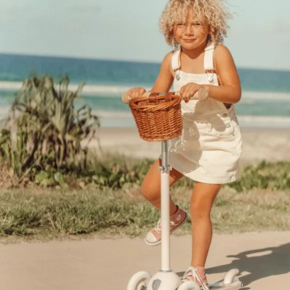 De Banwood Step – Pale Mint wordt geleverd met het iconische rieten mandje, waarin je kind makkelijk een knuffel of speeltje kan meenemen. Dankzij de combinatie van functionaliteit en stijl is deze step ideaal voor dagelijkse avonturen naar het park, school of gewoon om lekker rond te steppen in de buurt.
