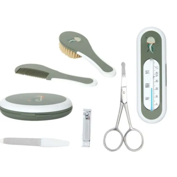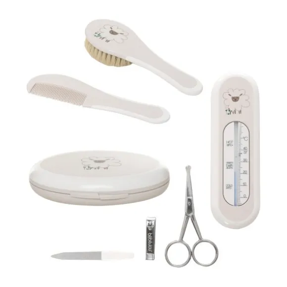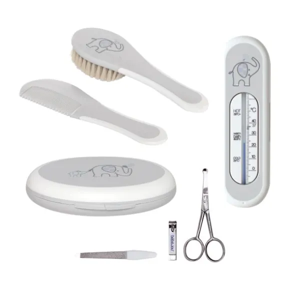 - – Inclusief kam, borstel, manicureset, badthermometer en opberger