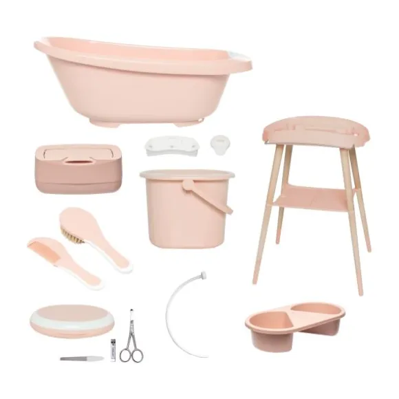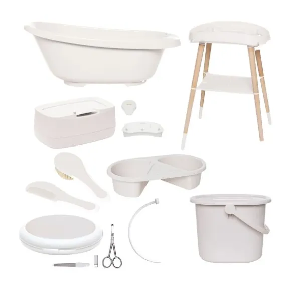 De Bébé-Jou Sense Badset Edition – 8-delig is een complete en luxe verzorgingsset die badderen en verzorgen van je baby eenvoudig en comfortabel maakt. Het ergonomisch gevormde babybadje staat stevig op de stijlvolle Sense standaard met beukenhouten poten. Dankzij het praktische Click-systeem plaats je het badje veilig en moeiteloos op de standaard, zodat jij in een comfortabele houding je kindje kunt badderen. Naast het babybad en de standaard bevat de set een luieremmer, waskom en vochtige doekjeshouder. Zo heb je alle benodigdheden altijd binnen handbereik. Met de digitale thermometer controleer je nauwkeurig de watertemperatuur, zodat je kindje veilig kan genieten van een ontspannen badmoment. De kam, zachte borstel en manicureset maken de verzorging compleet en zijn speciaal afgestemd op de gevoelige huid en nagels van je baby. Dankzij de afvoerslang laat je het badje eenvoudig leeglopen zonder te hoeven tillen. Het strakke design en de hoogwaardige materialen zorgen ervoor dat de set niet alleen praktisch is, maar ook stijlvol oogt in iedere babykamer of badkamer. Een perfecte keuze voor ouders die gemak, kwaliteit en design willen combineren in de dagelijkse verzorging.