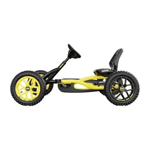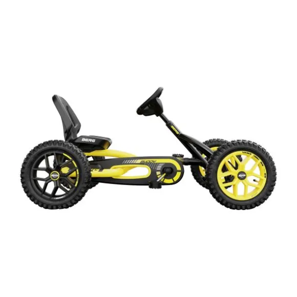 De BERG Buddy Cross Skelter is perfect voor jonge avonturiers die graag off-road gaan! Met zijn robuuste ontwerp, stoere terreinbanden en coole kleurencombinatie is deze skelter een echte blikvanger. Geschikt voor kinderen van 3 tot 8 jaar en uitgerust met een verstelbaar stoeltje, waardoor de skelter jarenlang met je kind meegroeit. Dankzij het innovatieve BFR-systeem kun je eenvoudig remmen, vooruit en achteruit rijden, wat zorgt voor optimale controle en rijplezier.