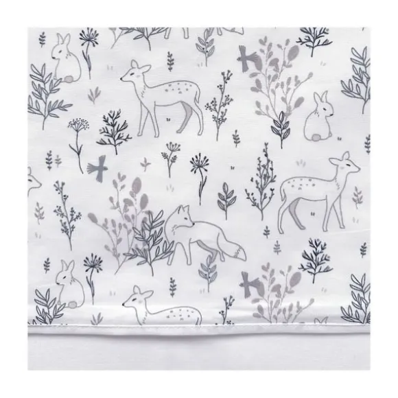 Het Bink Bedding Bas Ledikantlaken – 100 x 150 cm is een schattige en praktische keuze voor in het ledikant of de wieg. Het lakentje heeft een omslag met een lieve print van bosdieren zoals konijntjes, vossen en hertjes, en is mooi afgewerkt met een wit biasbandje. Het zachte dessin in natuurlijke tinten brengt een warme en rustige sfeer in de babykamer.