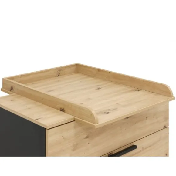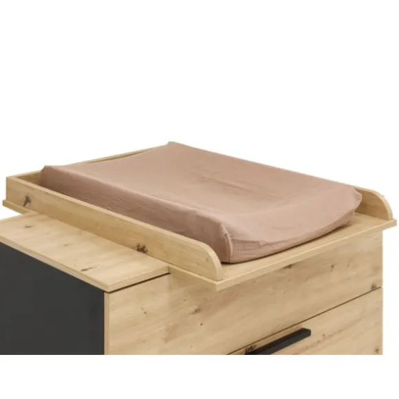 Met de Bopita Primo bladvergroter – Eiken maak je de commode uit de Xem-serie compleet. Deze praktische bladvergroter zorgt ervoor dat je je kindje recht voor je kunt verschonen en aankleden – comfortabel voor jou én veilig voor je kindje. Dankzij de opstaande randen blijft het aankleedkussen stevig op zijn plek liggen. De bladvergroter wordt stevig op de commode bevestigd en is eenvoudig weer te verwijderen zodra het niet meer nodig is. Let op: de bladvergroter steekt iets uit aan voor- en achterkant, waardoor de commode circa 10-15 cm van de wand komt te staan. Geschikt voor aankleedkussens tot maximaal 52 x 72 cm (niet inbegrepen) en voor kinderen tot 15 kg.