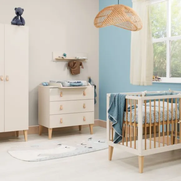 De Bopita Amira Babykamer | Bed 60×120 cm + Commode is een stijlvolle basisset met een warme, natuurlijke uitstraling. De combinatie van de zandkleur Dune en natuurlijke houten details zorgt voor een rustige sfeer in de babykamer. Het ledikant met verstelbare bodem en de commode met drie ruime lades vormen samen een praktische en duurzame inrichting voor de eerste jaren van je kindje.