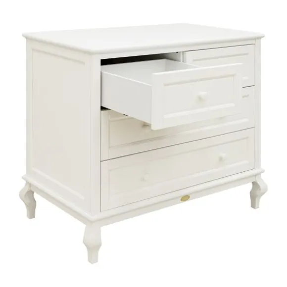 De Bopita Juliëtte Commode – 4 Laden – Off White is een elegante en praktische aanwinst voor de baby- of kinderkamer. De tijdloze off white kleur en sierlijke details uit de Juliëtte serie zorgen voor een klassieke uitstraling die moeiteloos met andere meubels te combineren is.