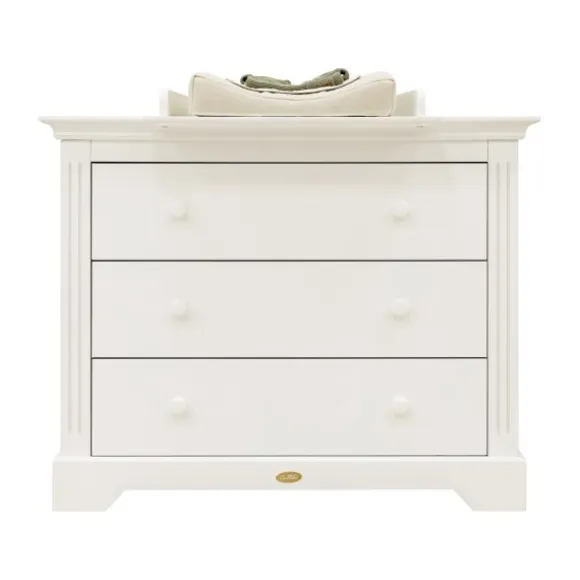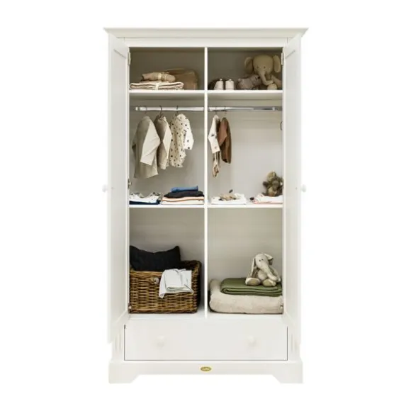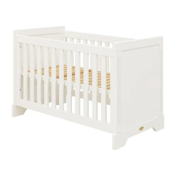 Het ledikant 60×120 cm is voorzien van een in hoogte verstelbare lattenbodem. Zo ligt je kindje de eerste maanden hoger en kun je hem of haar eenvoudig in en uit bed tillen. Zodra je kindje groter wordt, verlaag je de bodem voor extra veiligheid. De commode beschikt over drie ruime lades met voldoende plek voor kleding en verzorgingsspullen.