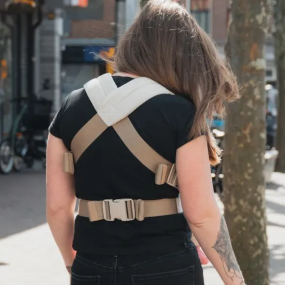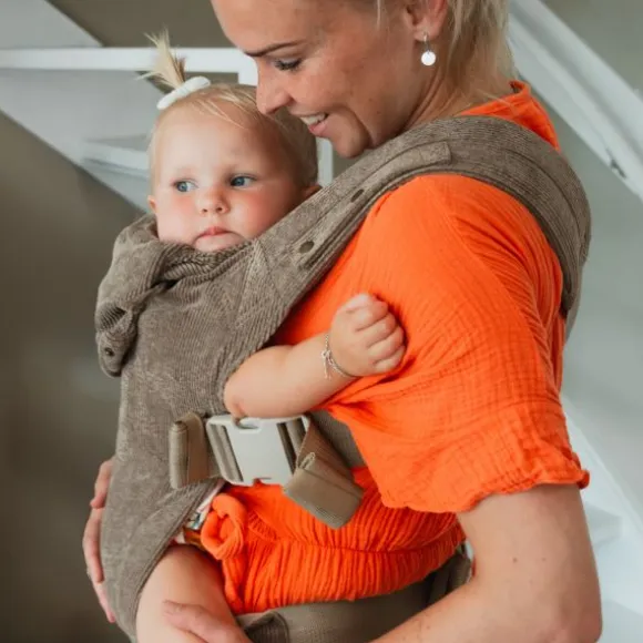 Draag je je kindje op je buik, dan is het comfortabel om de schouderbanden kruislings te bevestigen. Wanneer je je kindje op je rug draagt is dit minder fijn. Hiervoor wordt er een verbindingsbandje meegeleverd, die ervoor zorgt dat de schouderbanden niet zullen afzakken. Ook kan je het verbindingsbandje gebruiken om het rugpand te versmallen voor pasgeborenen. Zo kan je ervoor zorgen dat je kindje altijd van knieholte tot knieholte wordt ondersteund.