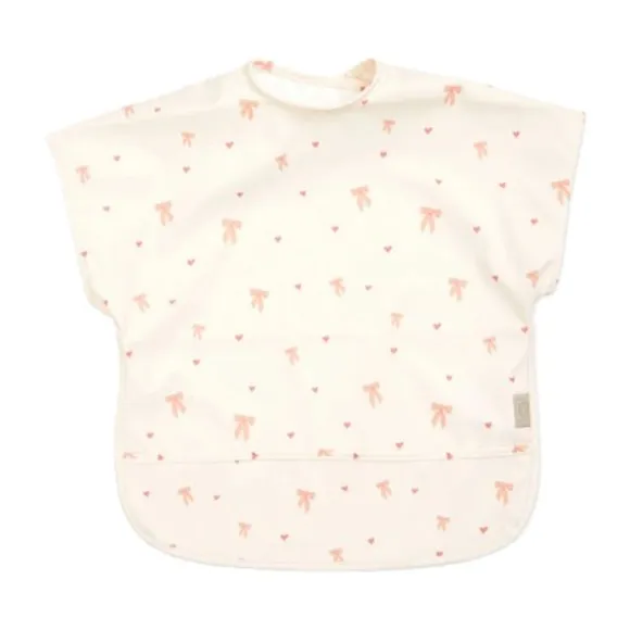 De Cam Cam Slab Korte Mouwen – Bows is een stijlvolle en functionele slab die je kindje beschermt tegen knoeien tijdens het eten of knutselen. Met zijn korte mouwen biedt deze slab extra bescherming rondom de schouders, terwijl het schattige strikjesdessin met kleine hartjes zorgt voor een lieve, speelse uitstraling.