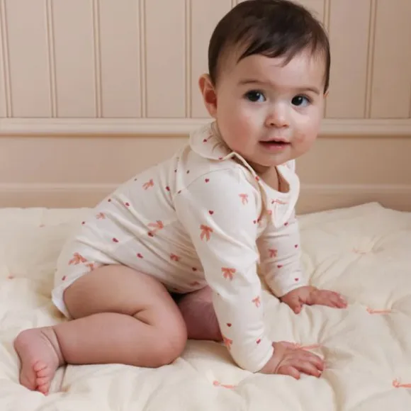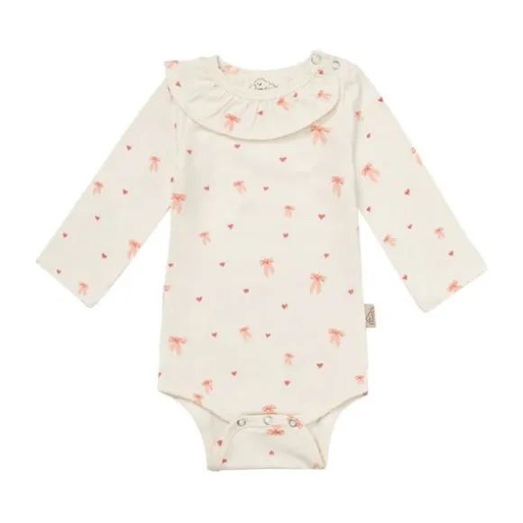 De Cam Cam Copenhagen Long Sleeved Body Holly – 56 cm – Bows is een charmante romper voor de allerkleinsten met een lieflijk strikjesdessin. De sierlijke rufflekraag en zachte kleuren zorgen voor een schattige en stijlvolle look, perfect voor elke gelegenheid.