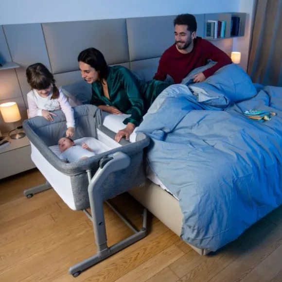 De Chicco Next2Me Magic Evo Co-Sleeper – Grey Mist maakt het mogelijk om het wiegje te bevestigen aan het bed van de ouders. De hoogte van het wiegje is verstelbaar in 11 verschillende standen, zo kan het wiegje aangepast worden aan de hoogte van het bed van de ouders. Het matras van de wieg kan op een half-hellende stand vastgemaakt worden om de vertering te bevorderen en beter te ademen. De wieg is voorzien van een schommelfunctie is eenvoudig te activeren is met één knop. Stapsgewijs kun je het wiegje meer zelfstandig gaan gebruiken in bijvoorbeeld de babykamer of beneden. De wieg is dankzij de zwenkwieltjes gemakkelijk te verplaatsen. Met de Chicco Next2Me Magic Evo wieg is je kindje altijd dicht bij jou! Uniek aan de Magic Evo uitvoering van het Chicco Next2Me Wiegje is dat je de zijkant van deze wieg met één hand omhoog of omlaag kunt doen en dat er een ademend 3D-gaasmatras wordt meegeleverd.