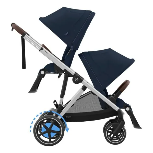 De Cybex E-Gazelle S Duowagen beschikt over een reiswieg die extra ruim en bijzonder comfortabel is vormgegeven. De reiswieg wordt geleverd inclusief een matras van zacht schuim zodat je kindje tot ongeveer 6 maanden op een veilige en comfortabele manier vervoert kan worden. De zitjes van de Cybex E-Gazelle S Duowagen zijn op twee manieren op het frame te plaatsen. Dat houdt in dat je de zitjes zowel naar je toe als van je af kunt gebruiken. De rugleuning van het zitje is met één hand verstelbaar en kan volledig plat, waardoor je je kindje al heel snel in deze kinderwagen kunt vervoeren. Daarnaast beschikt de zitting over een XXL-zonnekap met een ventilatie gedeelte voor optimale luchtcirculatie. De zonnekap beschermd je kindje tegen de weersomstandigheden en biedt voldoende privacy tijdens een dutje. Ook is de duwbeugel van de kinderwagen in hoogte verstelbaar, zodat iedereen prettig achter de wagen kan lopen.