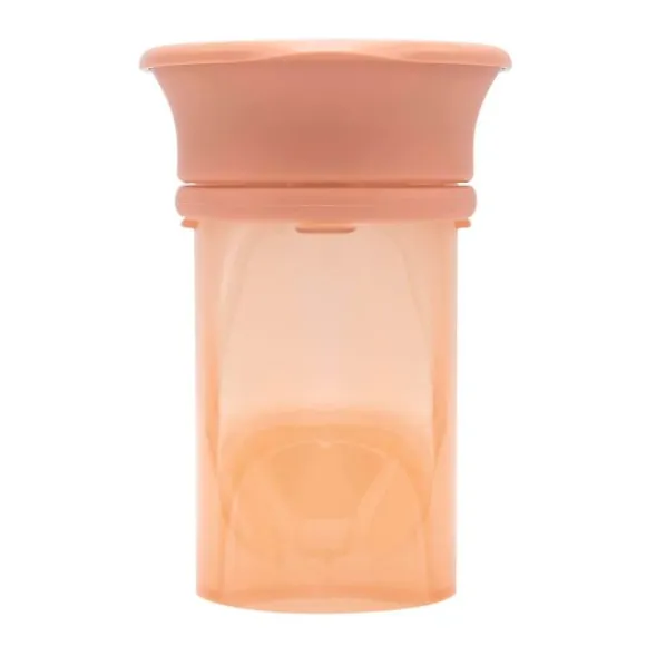 De Difrax Antilekbeker 360 Graden Peachy is een fijne drinkbeker voor je kindje. Deze antilekbeker is een ideale stap voordat je kindje uit een open beker gaat drinken. De beker voorkomt knoeien doordat er alleen drinken uit de beker komt op de plek waar je kindje de mond tegen de beker aan zet. De beker wordt geleverd inclusief afsluitdop, zodat hij ook makkelijk mee te nemen is. De drinkbeker is geschikt voor kindjes vanaf 9 maanden en draagt bij aan de spierontwikkeling in de mond. De beker heeft een inhoud van 250 ml en is voor in de vaatwasser. Gemaakt van hoogwaardig materiaal.
