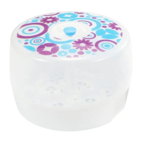 In deze Difrax magnetronsterilisator worden alle schadelijke bacteriën in flessen, spenen en flesonderdelen verwijderd door middel van stoom binnen een paar minuten. De sterilisator biedt plaats voor vier S-babyflessen, spenen, fopspenen, borstkolf onderdelen en accessoires. De kleur op de deksel geeft aan of de sterilisator nog warm of koud is. Ideaal want zo kan je nooit je handen verbranden aan de hete stoom.