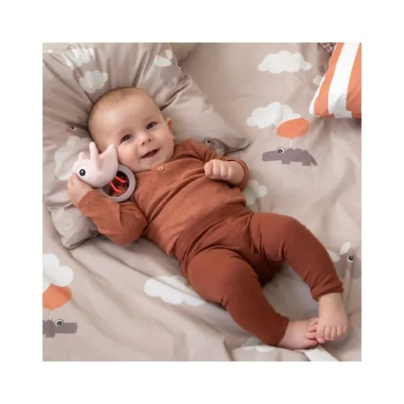 De Done By Deer Birdee Ringrammelaar – Powder is een vrolijk speeltje waar je kindje lekker mee kan knuffelen en spelen. De rammelaar van het merk Done By Deer is gemakkelijk vast te houden voor je kindje. Daarnaast is de ringrammelaar ook voorzien van een ring die perfect als bijtring kan dienen als de tandjes van je kindje doorkomen. Verder is de rammelaar gemaakt van hoogwaardig materiaal en voelt zacht aan.