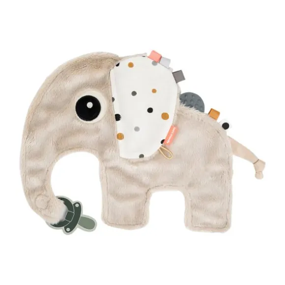 Het Done by Deer Cozy Friend Elphee Speendoekje is een fijn doekje waarmee je kindje heerlijk kan knuffelen. Het speendoekje is gemaakt van een fijne katoen/polyester mix, dat heerlijk zacht aanvoelt op het huidje van je kindje. Het doekje heeft de vorm van een olifantje en heeft verschillende speelse texturen en lusjes waar je kindje leuk mee kan spelen. Je kunt het speendoekje gemakkelijk bevestigen aan een fopspeen door middel van de kleine lus. Zo kan je kindje de Cozy Friend overal mee naartoe nemen!