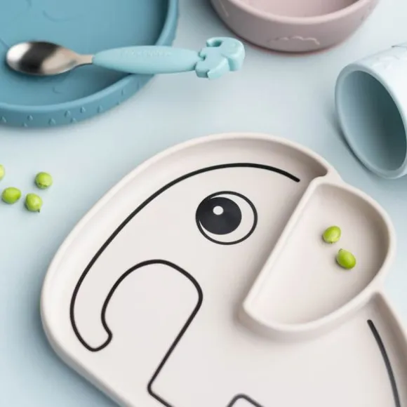 Het Done By Deer Elphee Stick&Stay Bord – Sand helpt je kindje om zelfstandig te leren eten. Het bordje beschikt over een zuignap aan de onderkant, waardoor het voor je kindje lastig wordt om het bordje te verschuiven of op te pakken. Op vrijwel ieder glad oppervlak kan het bordje zich vastzuigen. Het bord beschikt over twee vakken waar je verschillende soorten eten in kan doen. Omdat het gemaakt is van silicone is het zeer flexibel waardoor het ook niet snel kapot gaat. Daarnaast is dit bordje geschikt voor de magnetron en mag het in de vaatwasser.