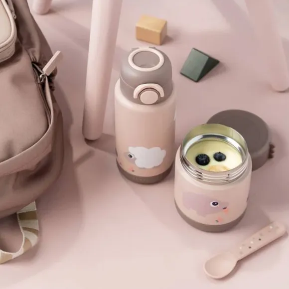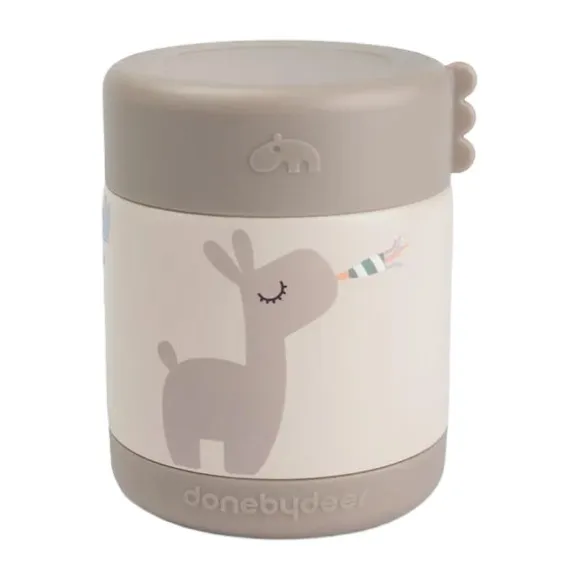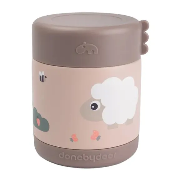 De Done By Deer Food Jar – Tiny Farm – Blue houdt eten tot 6 uur warm en 8 uur koud. Met 300 ml inhoud en een compact formaat is hij ideaal voor onderweg. Het vrolijke Tiny Farm ontwerp maakt elke maaltijd leuk, terwijl de lekvrije en BPA-vrije constructie zorgt voor veilig en praktisch gebruik. Gemaakt van duurzaam RVS met dubbelwandige isolatie, is deze food jar perfect voor soep, fruit, yoghurt of andere snacks. Dankzij het formaat van Ø9 x H11 cm past hij gemakkelijk in elke tas of rugzak.