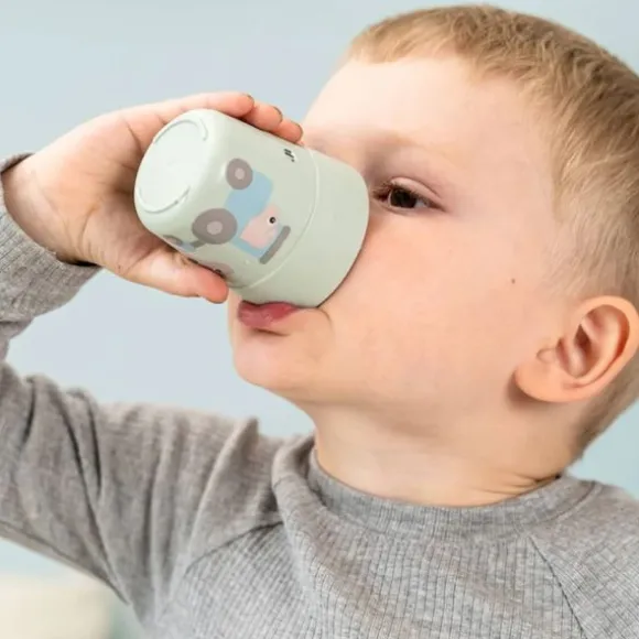 De Done by Deer Foodie Dinerset met Zuignap – Tiny Farm – Groen is ideaal voor de eerste eetmomenten van je kindje. Dankzij de praktische zuignap blijft het bord stevig op zijn plek, zodat morsen en omstoten tot een minimum worden beperkt. Het bord is opgedeeld in drie handige vakjes om verschillende soorten eten van elkaar te scheiden. De hoge rand maakt het bovendien makkelijker voor je kindje om zelfstandig te leren eten. De set heeft een rustgevende groene kleur en is voorzien van een vrolijk Tiny Farm design met Dotti en Pigee, die je kleintje spelenderwijs uitnodigen om nieuwe smaken te ontdekken. De dinerset bestaat uit een bord, beker, vork en mes, en is vaatwasserbestendig voor eenvoudig schoonmaken (handwas wordt aangeraden om de print mooi te houden). Het duurzame materiaal maakt de set perfect voor dagelijks gebruik.