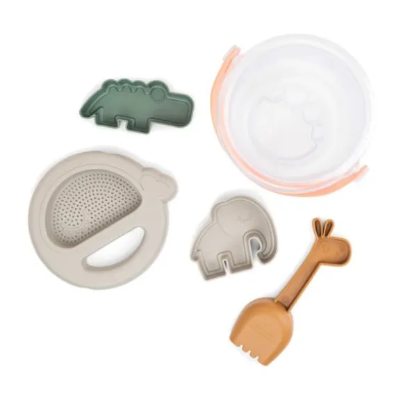 - – Bestaat uit een emmer, zeef, schepje en 2 dierenvormpjes