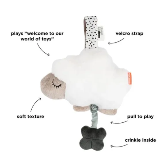 De Done By Deer Muziekdoos – Sheepy Sand Is Een Zacht Schaapje Dat Een Rustgevend Deuntje Speelt Als Je Aan Het Klavertje Trekt. Ideaal Voor Bedtijd Of Rustmomentjes. Met Één Open En Één Gesloten Oog Spreekt Sheepy Tot De Verbeelding Van Je Baby.