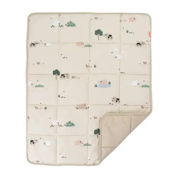 - – Omkeerbaar design: Tiny Farm print en effen zandkleur
