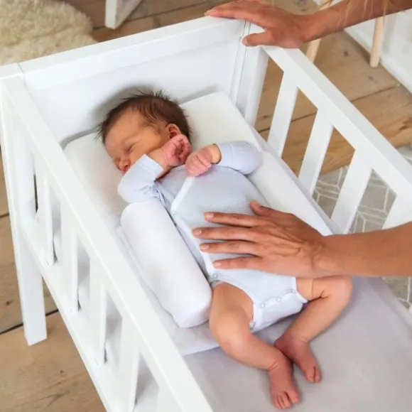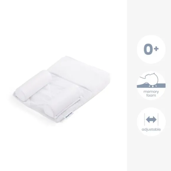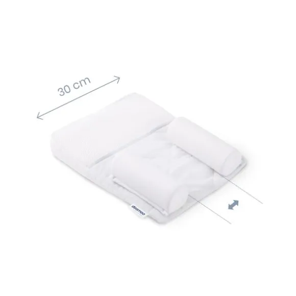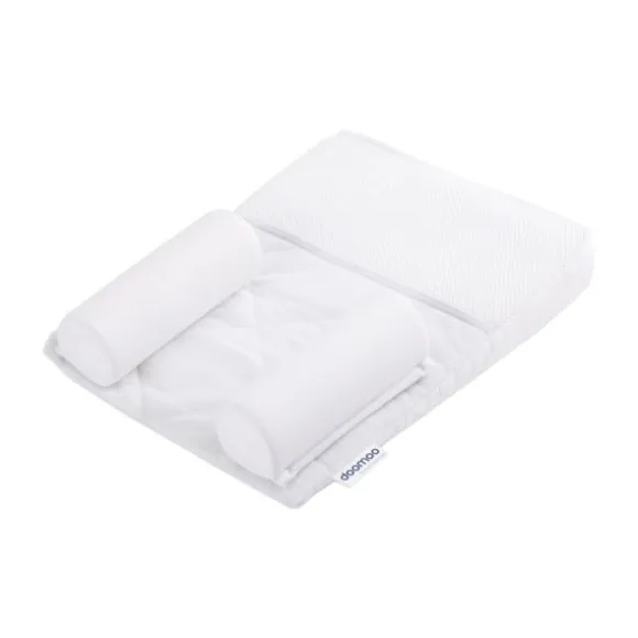 De supreme sleep van het merk Doomoo Basics zorgt ervoor dat de baby comfortabel op zijn rugje kan liggen en voorkomt ook het risico van plagiocefalie (afgeplat hoofd) dat aan de rugligging verbonden is. De supreme sleep is geschikt vanaf de geboorte. Het bestaat uit een hellend vlak in schuim met viscoelatisch geheugen en twee zijrollen bevestigbaar met behulp van klittenband.