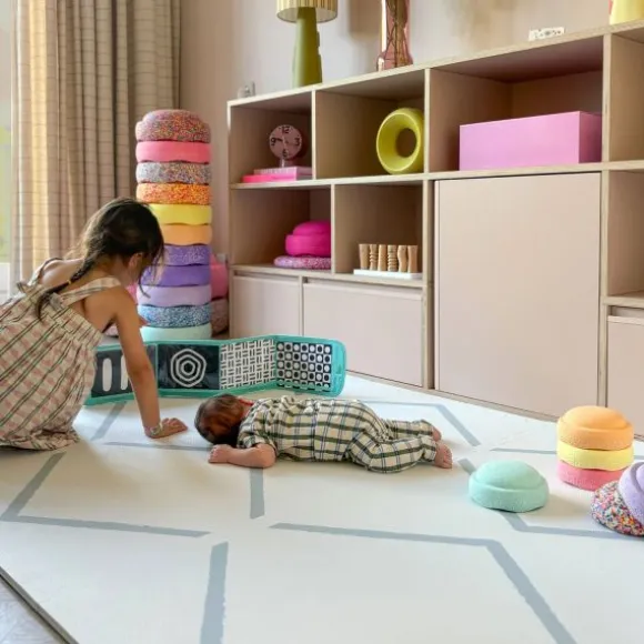 De Eeveve Speelmat – Beni is een stijlvolle en veilige speelmat die perfect is voor elke fase van de ontwikkeling van je kindje. Van de eerste tummy time tot de eerste stapjes: deze zachte mat biedt een comfortabele en dempende ondergrond om op te rollen, kruipen of spelen. Dankzij het moderne Beni-patroon is de speelmat niet alleen functioneel, maar ook een fraaie toevoeging aan je interieur. De speelmat is gemaakt van hoogwaardig, niet-giftig EVA-schuim en bestaat uit zes puzzelstukken met afwerk-randen. Dit maakt de mat eenvoudig op te bergen én uitbreidbaar naar een groter speeloppervlak. Het antislip en waterdichte oppervlak is makkelijk schoon te maken met een vochtige doek. Bovendien is de mat geschikt voor vloerverwarming en geschikt voor elk type vloer – ideaal voor dagelijks gebruik in elke ruimte van het huis. Veiligheid staat voorop: de Eeveve Speelmat is volledig vrij van schadelijke stoffen zoals BPA, ftalaten en formamide. De mat voldoet aan de Europese EN71-normen, is CE-gecertificeerd en getest volgens de strenge REACH-richtlijnen. Zo weet je zeker dat je kindje op een veilige en gezonde ondergrond speelt vanaf de allereerste dag.