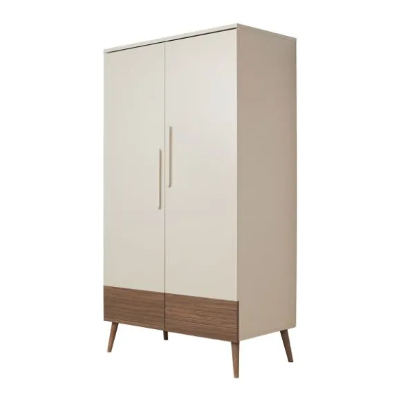 De Europe Baby Sev Babykamer Oatmeal/Walnoot | Ledikant 60×120 + Commode is een stijlvolle en warme basis voor de eerste kamer van je kindje. De verfijnde combinatie van zachte cashmere tinten en diepe walnootaccenten geeft de kamer een moderne, maar toch retro sfeer. Deze set bestaat uit een ruim ledikant en een praktische commode, beide afgewerkt met oog voor detail en functionaliteit. Het ledikant is geschikt voor een matras van 60×120 cm en is voorzien van een stevige lattenbodem en veilige spijlen. De schuine beukenhouten pootjes geven het geheel een luchtige uitstraling, terwijl de gelamineerde afwerking zorgt voor duurzaamheid en eenvoudig onderhoud. De warme kleurencombinatie laat zich moeiteloos integreren in verschillende interieurstijlen. De bijpassende commode is ontworpen met het oog op gebruiksgemak. Met drie ruime lades heb je voldoende opbergruimte voor kleertjes, luiers en andere verzorgingsspullen. Het blad biedt ruimte voor een aankussen, zodat je jouw kindje comfortabel kunt verschonen. De combinatie van retro details met een strak ontwerp maakt deze commode zowel functioneel als stijlvol. Met de Europe Baby Sev babykamer creëer je een serene, gezellige en praktische omgeving waarin je kindje zich geborgen voelt. Deze complete set is de perfecte keuze voor ouders die houden van natuurlijke kleuren en een design met karakter.