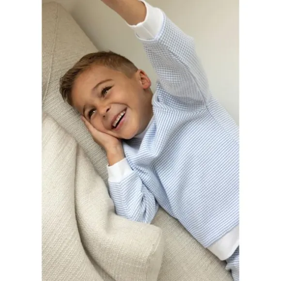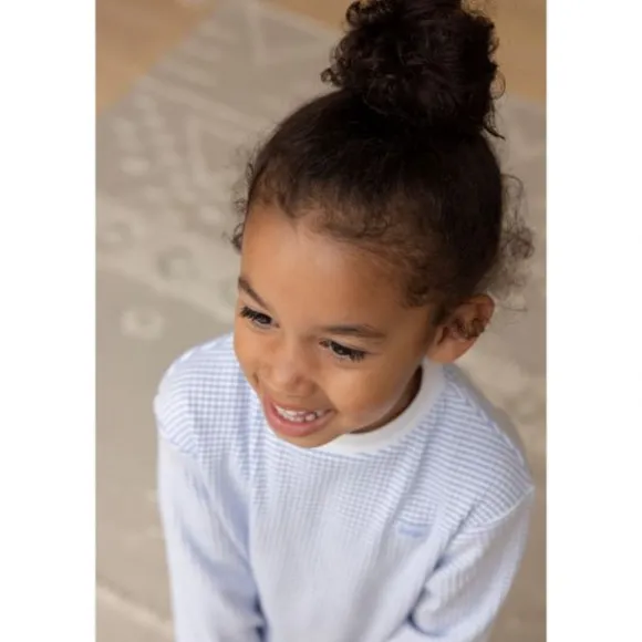 De Feetje Wafel Pyjama – Blue – Maat 56 is een zacht en comfortabel tweedelig pyjamaatje, perfect voor je baby. Het setje bestaat uit een shirt en een broekje, beide gemaakt van rekbaar katoen met een fijne wafeltjesstructuur. Dit zorgt niet alleen voor een stijlvolle uitstraling, maar ook voor optimaal draagcomfort. Je kleintje kan heerlijk wegdromen in deze pyjama, die deel uitmaakt van de geliefde Wafel-collectie van Feetje.