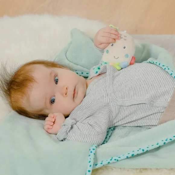 De Fehn Cuddleblanket Octopus is een schattige 2-delige set met een zachte fleece deken en een bijpassend grijpspeeltje in de vorm van een vrolijke octopus. Ideaal als eerste babydekentje of cadeau voor pasgeborenen. De kleurrijke octopus nodigt uit tot ontdekken en stimuleert spelenderwijs de zintuigen en fijne motoriek. De deken is knuffelzacht, warm en veelzijdig in gebruik – perfect voor in de wieg, kinderwagen of als speelkleed. Beide onderdelen zijn machinewasbaar op 30°C en behouden hun zachtheid, ook bij veelvuldig gebruik.
