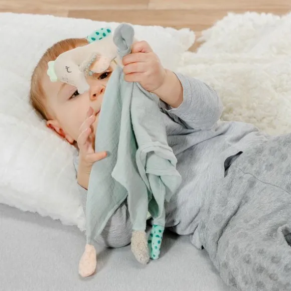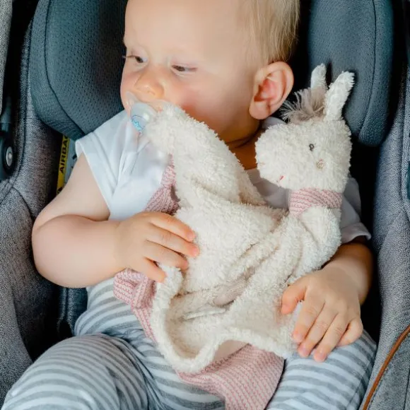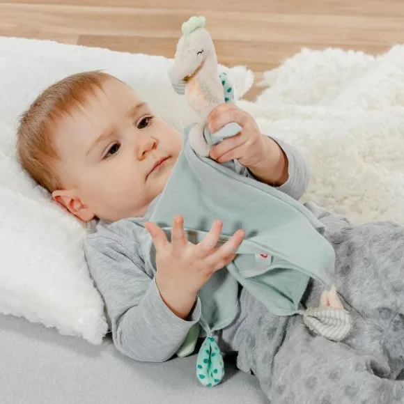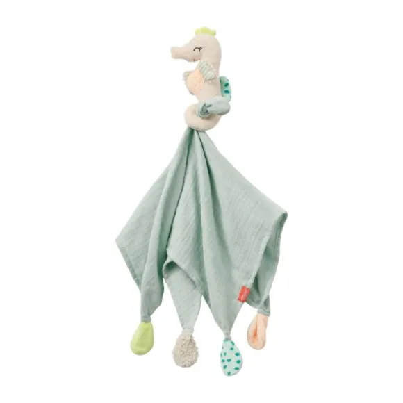 Het Fehn Knuffeldoekje – Zeepaardje is een zacht en troostend knuffelvriendje dat je kleintje vanaf dag één kan omarmen. Dit schattige doekje met zeepaardje stimuleert het grijpen en voelen door de verschillende structuren en fluffy details. Ideaal als troostdoekje, knuffel of slaapmaatje tijdens rustmomenten, onderweg of in de kinderwagen. Dankzij de zachte muslin en velours stoffen ligt het doekje comfortabel in kleine handjes. Het zeepaardje bovenaan nodigt uit tot ontdekken en knuffelen. Gaat het doekje eens mee in de was? Geen probleem: je kunt het eenvoudig reinigen in de machine op 30 °C zodat het zacht en fris blijft.