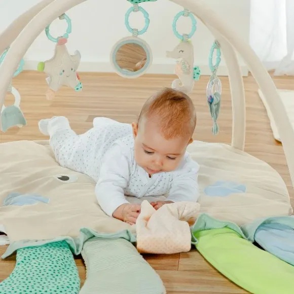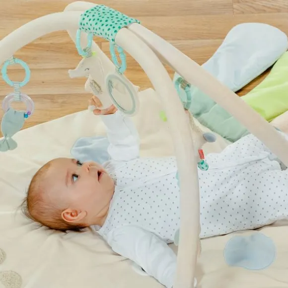 Het Fehn Speelkleed – Octopus – 3D Activity Quilt is een vrolijk en comfortabel speelkleed voor baby’s vanaf 0 maanden. De zachte mat in de vorm van een octopus is voorzien van een speelboog met afneembare speeltjes zoals een rammelaar, spiegel, knisperfolie en bijtspeeltje. Ideaal om de zintuigen en motoriek te stimuleren tijdens het spelen en ontdekken. Dankzij het gebruik van verschillende materialen en structuren wordt de tastzin geprikkeld en kunnen baby’s op een veilige manier liggen, grijpen en rollen. Het speelkleed is 120 x 80 cm groot en eenvoudig wasbaar op 30°C. Perfect als kraamcadeau of om dagelijks mee te spelen.