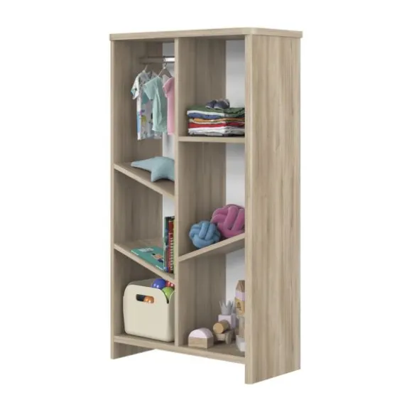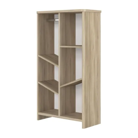 De boekenkast is slim ontworpen met een combinatie van rechte en schuine legplanken, én een handige kledingroede. Dit maakt de kast multifunctioneel: perfect om babykleding aan op te hangen, dagelijkse verzorgingsspullen op te bergen én boeken of decoratieve items tentoon te stellen. Ideaal achter de commode of in een hoek van de kamer waar je gemakkelijk bij moet kunnen.