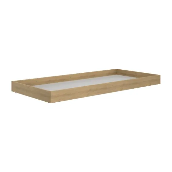 Met een afmeting van 190 x 93 x 15 cm schuif je de lade eenvoudig onder het bed, waardoor je optimaal gebruikmaakt van de beschikbare ruimte. De lade is voorzien van stevige wieltjes waardoor deze soepel in- en uitschuift. De subtiele houtstructuur en strakke afwerking zorgen voor een rustige, natuurlijke uitstraling in de kinderkamer of tienerkamer.
