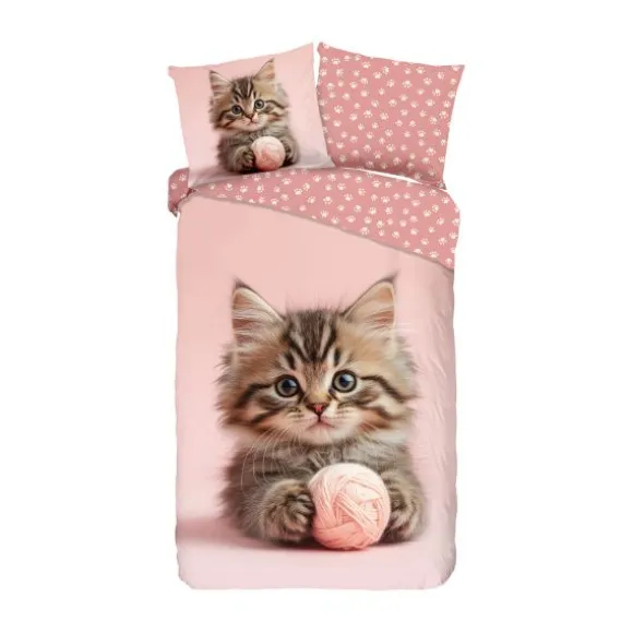 - – Kinderdekbedovertrek met kattenprint op roze achtergrond
