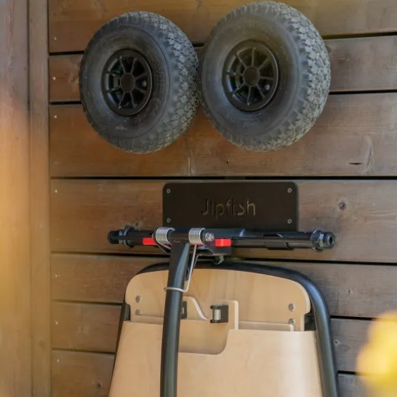 Met de Jipfish Wandhaak – Black berg je je Jipfish Wagon efficiënt op zonder ruimte te verspillen. Dit slimme haaksysteem is ontworpen om de wagon plat tegen elke muur te hangen – inclusief de wielen – zodat hij nooit in de weg staat. De set bestaat uit stevige metalen haken met een strak design en subtiel Jipfish-logo. Ideaal voor in de schuur, garage of hal. Zo blijft je wagon netjes opgeborgen én altijd binnen handbereik.
