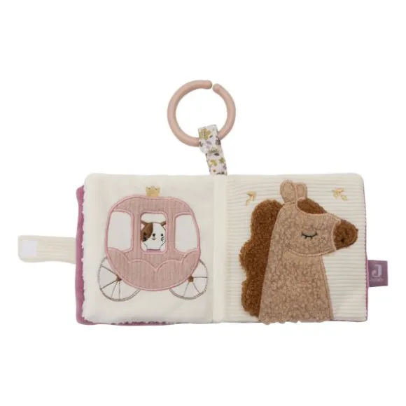 Laat je kindje spelenderwijs ontdekken met het Jollein Activiteitenboekje – Flower Fairies. Dit zachte stoffen boekje zit vol lieve details, vrolijke figuren en verschillende structuren. Denk aan een prinsessenkatje, een paard, bloemen, en zelfs een veilig spiegeltje om zichzelf in te bekijken. De zachte kleuren en sprookjesachtige illustraties maken het boekje extra aantrekkelijk voor kleine ontdekkers. Dankzij de handige bevestigingsring is het boekje eenvoudig vast te maken aan de kinderwagen, autostoel of box. Zo kan je kleintje overal genieten van speelplezier. Ideaal voor het stimuleren van tastzin, gehoor en visuele waarneming. Een perfect kraamcadeautje of aanvulling op de Flower Fairies-collectie van Jollein.