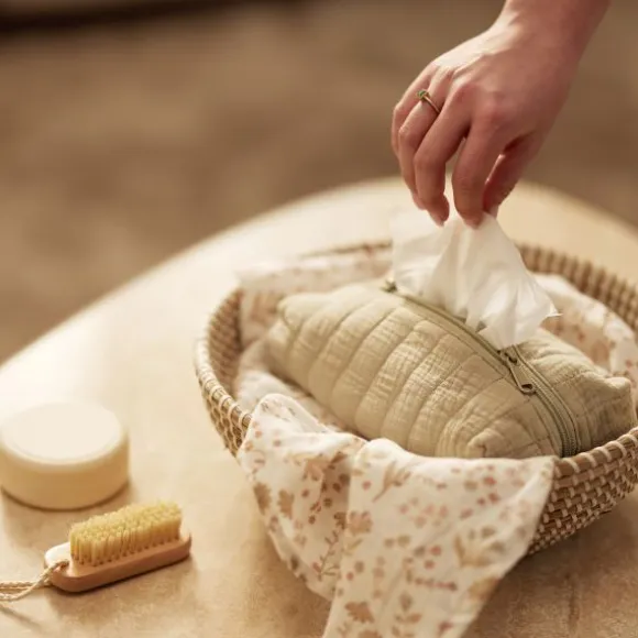 Dankzij de dunne, soepele stof kun je moeiteloos huidplooitjes en het gebied onder het kinnetje schoonmaken zonder de huid te irriteren. Bovendien zijn de washandjes ook handig om onderweg vieze handjes en snoetjes schoon te maken. De schattige Bloomy-print met beige bloemetjes maakt deze set niet alleen praktisch, maar ook een stijlvolle toevoeging aan de babyuitzet.