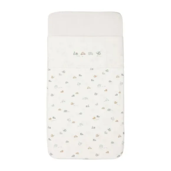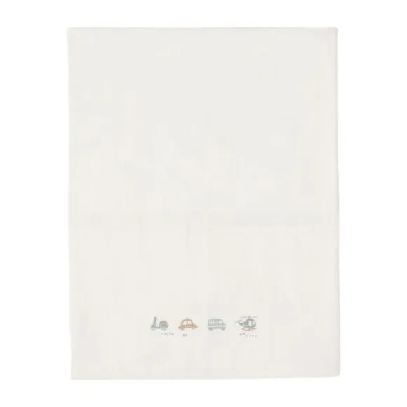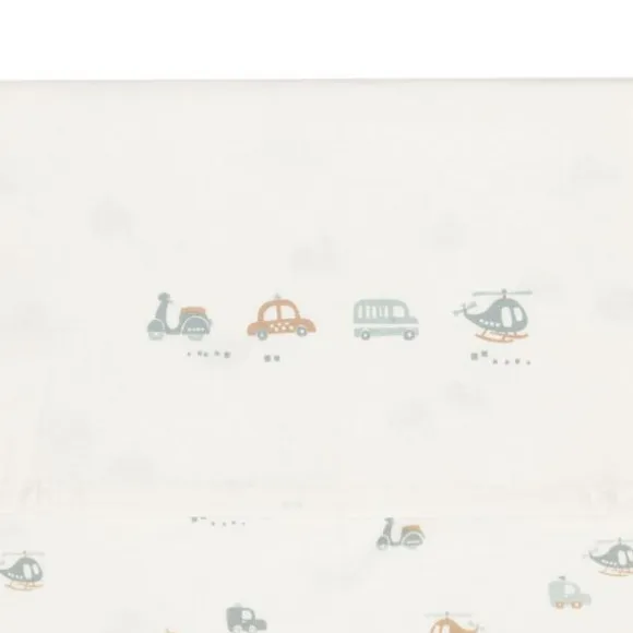 Laat je kleintje heerlijk dromen onder het Jollein On The Go Laken! Dit ivoorkleurige lakentje heeft een speelse print op de omgevouwen rand met twee autootjes, een scooter en een helikopter. Perfect voor kleine avonturiers en een vrolijke toevoeging aan de babykamer!