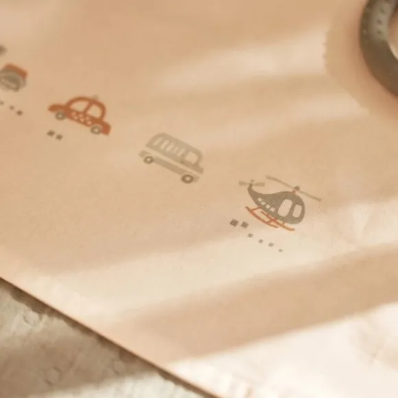 - – Speels On The Go design met voertuigen op de omgevouwen rand