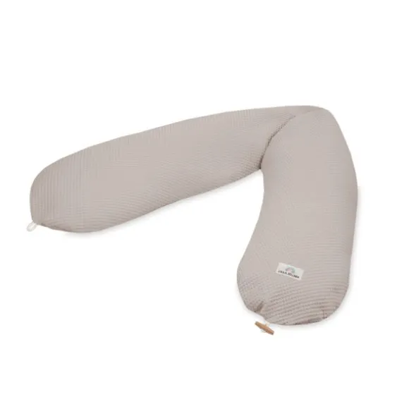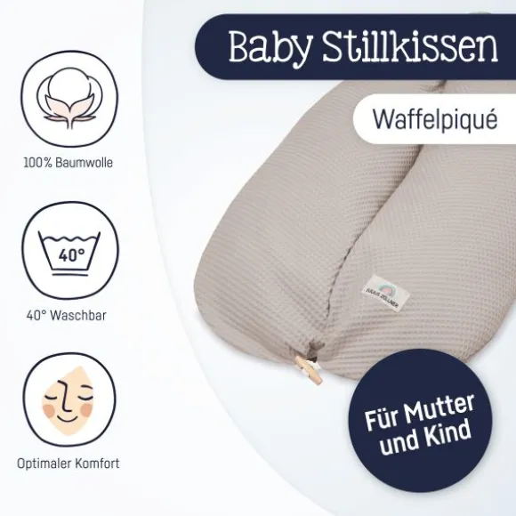 De buitenkant is gemaakt van zachte, ademende waffelpiqué van 100% katoen. Dit maakt het kussen niet alleen huidvriendelijk, maar ook stijlvol. De rustige Seashell-kleur zorgt voor een natuurlijke uitstraling die perfect past bij een serene babykamer of comfortabele zithoek.