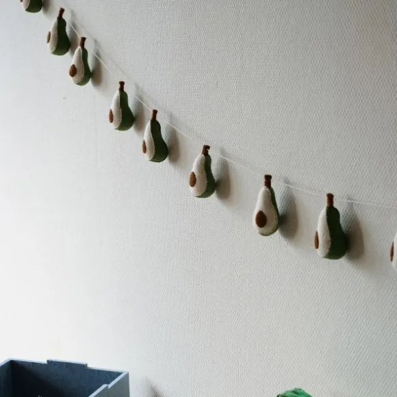 Geef de baby- of kinderkamer een speelse twist met de KidsDepot Slinger – Persea Avocado. Deze vrolijke slinger is handgemaakt van duurzaam vilt en voorzien van 12 zachte avocado’s. Perfect voor aan de muur of boven een bedje! De natuurlijke kleuren en het grappige fruitthema maken deze slinger een echte blikvanger. Eenvoudig op te hangen en ideaal als stijlvolle decoratie in een botanisch of speels interieur. Een leuke toevoeging voor elke kinderkamer!