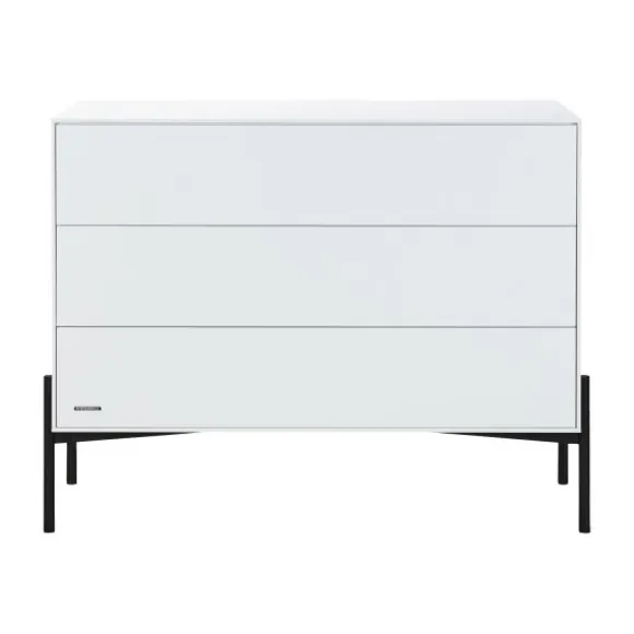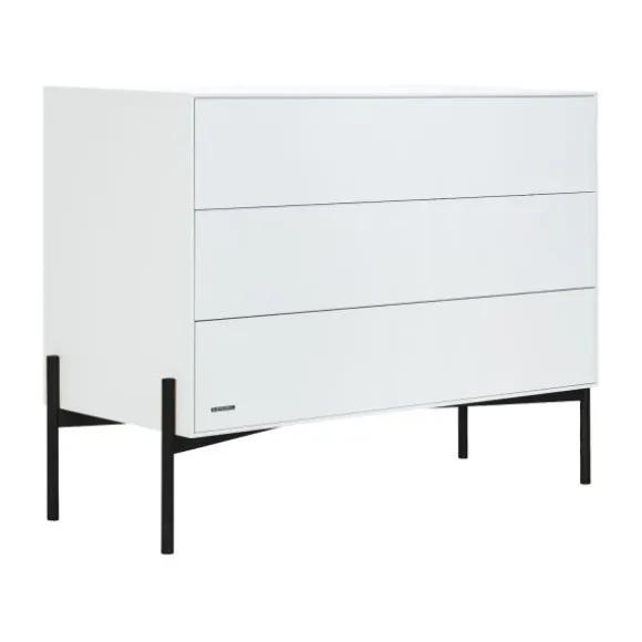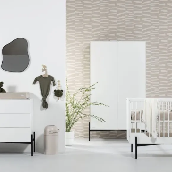 De Kidsmill Boutique Babykamer Wit / Zwart | Bed 60 x 120 cm + Commode is een stijlvolle kamer voorzien van zwarte pootjes. Het bedje is verstelbaar in 3 verschillende hoogtes en de commode beschikt over 3 ruime opbergladen. Verder zijn de meubels van de Boutique kamer gemaakt van hoogwaardig materiaal. Een stijlvolle kamer voorzien van een modern design.