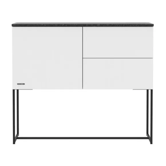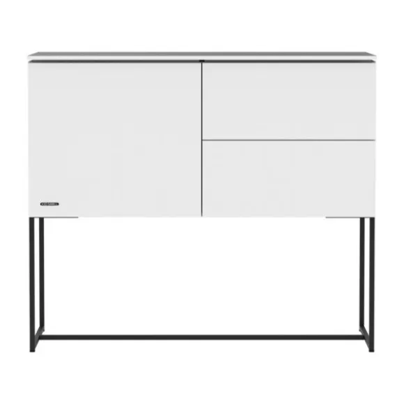 Deze uitvoering van de Intense Commode heeft 1 deur en 2 lades en een zwart, stalen onderstel. De commode is gemaakt van hoogwaardig materiaal en is erg praktisch in gebruik dankzij het push open systeem waarmee de deur en lades zijn toegerust. Hierdoor kun je de deur en lades heel gemakkelijk openen en zonder geluid sluiten. De commode is verkrijgbaar met verschillende commodebladen. Welke uitvoering is jouw favoriet?