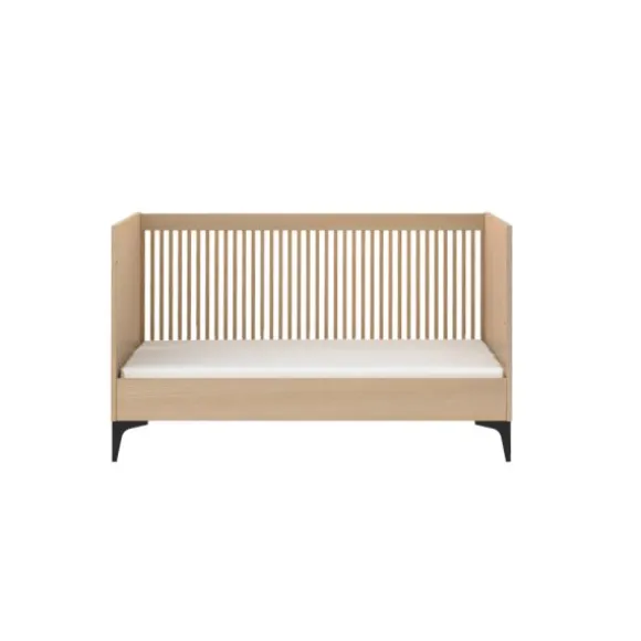 Het Kidsmill Levi Ledikant 70 x 140 cm – Incl. Rechte Poot – Naturel Eiken is de perfecte keuze als je op zoek bent naar een stijlvol ledikant voor in de babykamer. De mooie eikenkleur, in combinatie met de landelijke stijl van het ledikant, zorgen voor een chique en klassieke uitstraling. Het ledikant is gemaakt van hoogwaardig MDF en plaatmateriaal, gecombineerd met een eiken fineerlaag. De bodem van het ledikant is verstelbaar in drie verschillende hoogtes en groeit dus met je kindje mee. Hierdoor ligt je kindje altijd op de gewenste hoogte in het ledikant. De verfijnde groeven aan de zijkanten van het ledikant, in combinatie met de stalen pootjes aan de onderkant, zorgen voor een moderne en speelse afwerking. Verder voldoet het ledikant aan de Europese veiligheidsnorm, waardoor je kindje comfortabel en veilig in het ledikant kan slapen. Het Kidsmill Levi Ledikant 70×140 – Walnoot is perfect te combineren met andere meubelen uit onze Levi Walnoot collectie, zoals de Kidsmill Levi Commode – Walnoot.