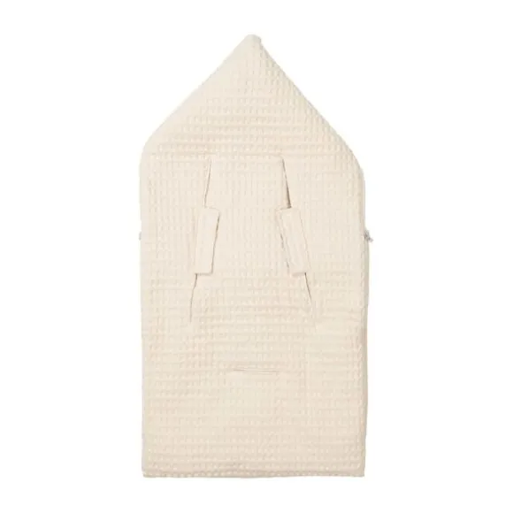 De Koeka Voetenzak 0+ Oslo – Natural houdt je baby heerlijk warm tijdens koude dagen. De zachte teddyvoering aan de binnenkant en de stijlvolle wafelstof aan de buitenkant zorgen voor optimaal comfort. De neutrale gebroken witte tint past perfect bij elke autostoel. Geschikt voor 3- en 5-punts gordelsystemen, ideaal voor een Maxi-Cosi of andere groep 0+ autostoeltjes. De handige ritssluiting maakt het openen en sluiten eenvoudig, terwijl de hoogwaardige materialen zorgen voor een zachte en knusse omgeving. De voetenzak is gemaakt van 100% katoen (buitenkant) en 100% polyester (voering & vulling). Het ongebleekte katoen geeft een pure uitstraling en is machine wasbaar voor eenvoudig onderhoud.